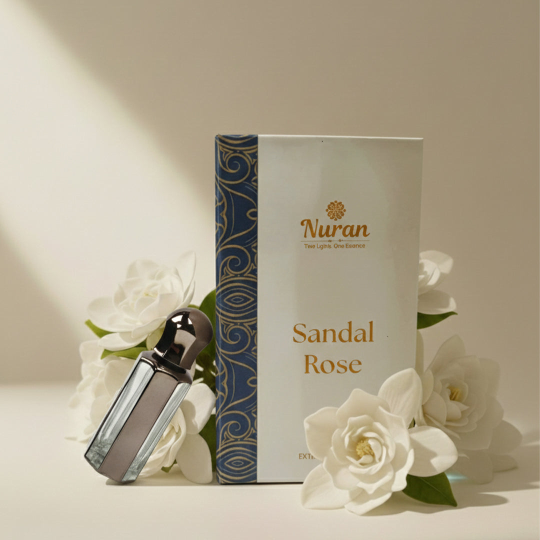 Discover the timeless elegance of Nuran Sandal Rose. This highly concentrated, alcohol-free Attar (Perfume Oil) blends two of the most classic and cherished notes in perfumery, resulting in an exceptionally warm, floral, and long-lasting scent.